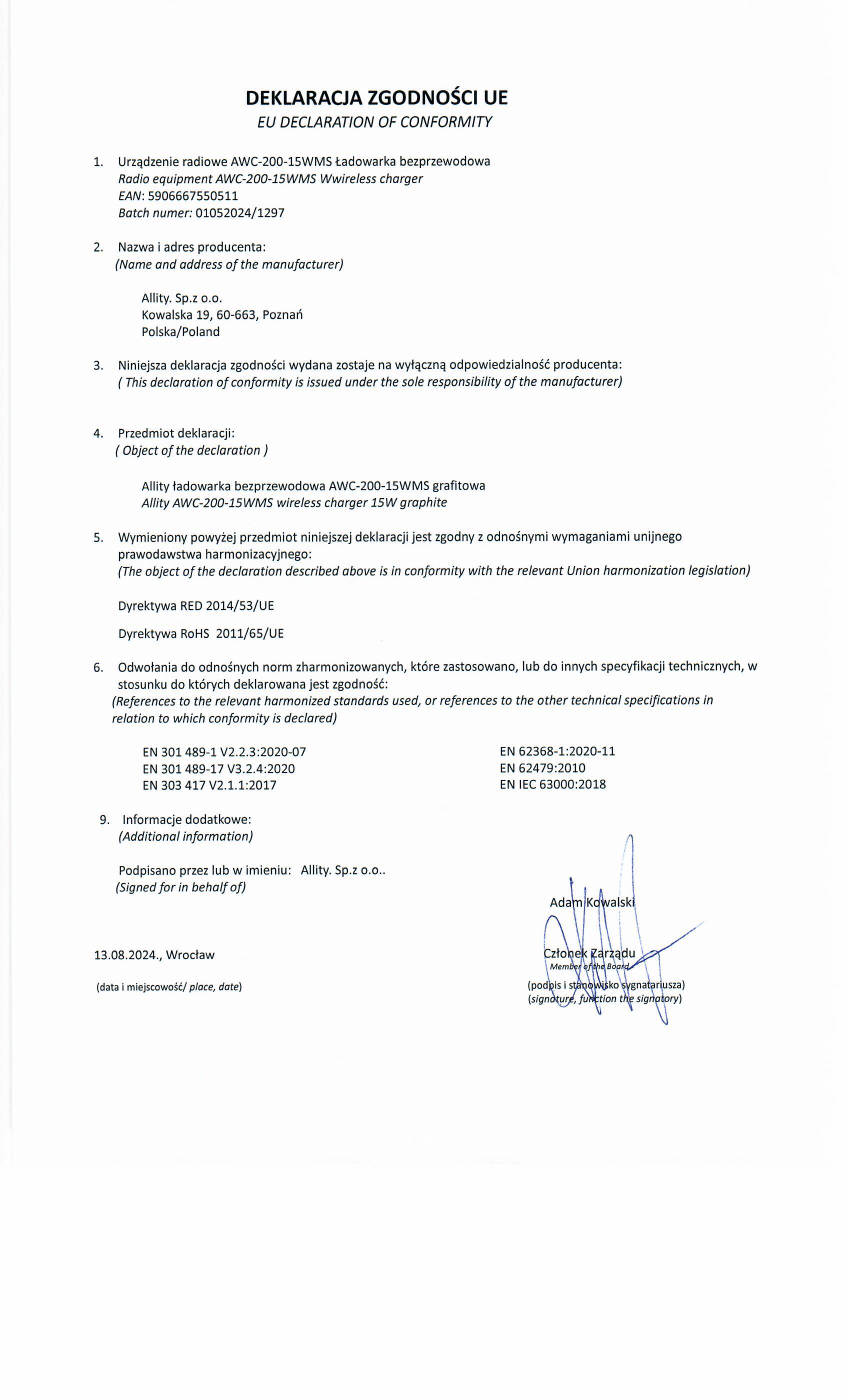 Allity ładowarka indukcyjna AWC-200-15WMS grafitowa